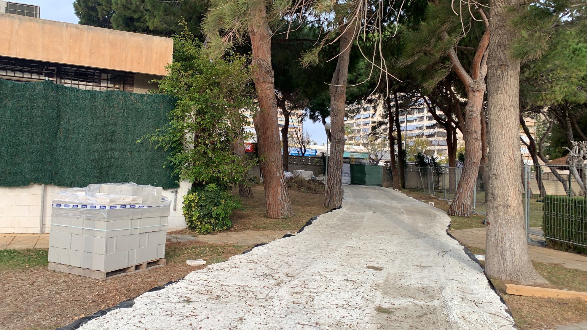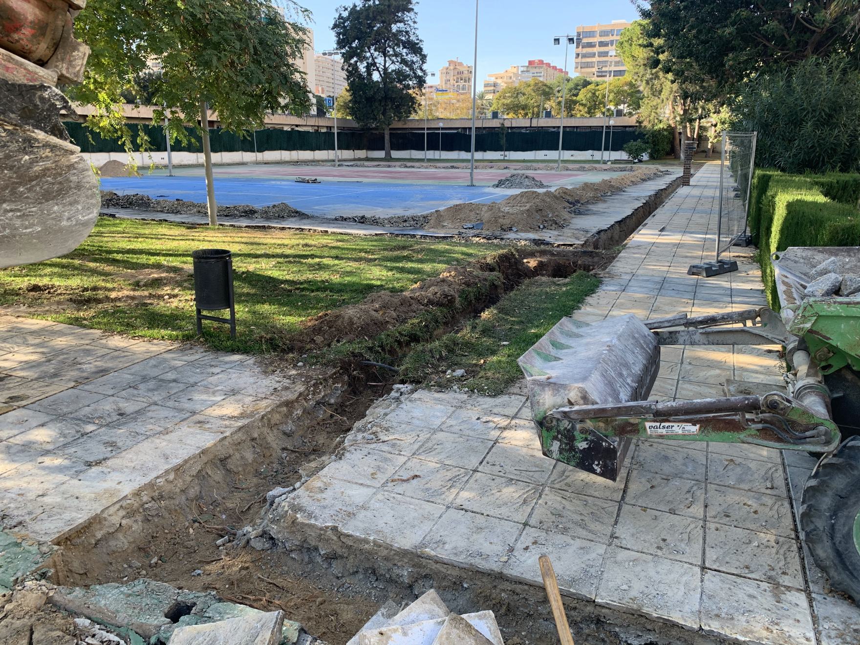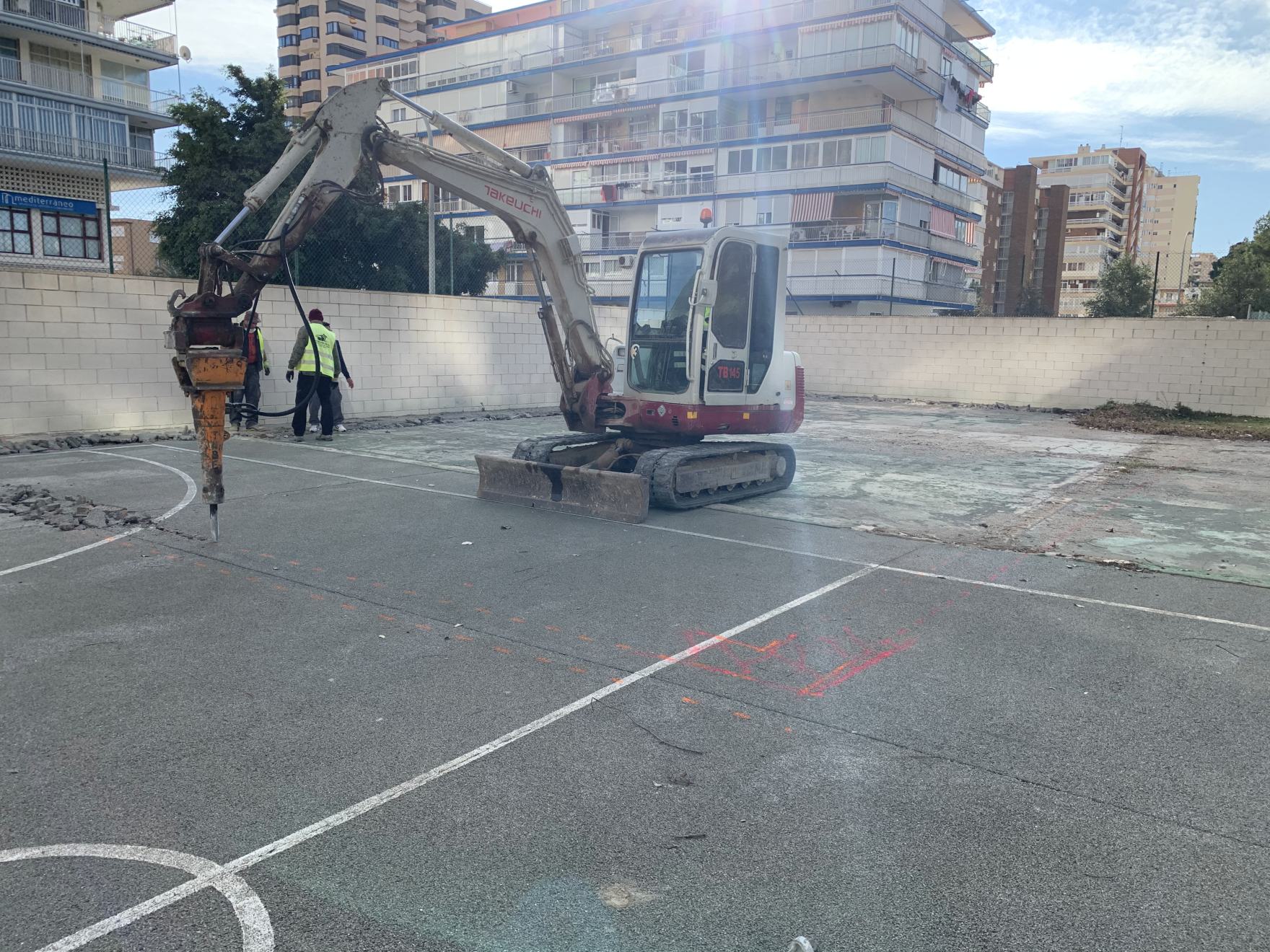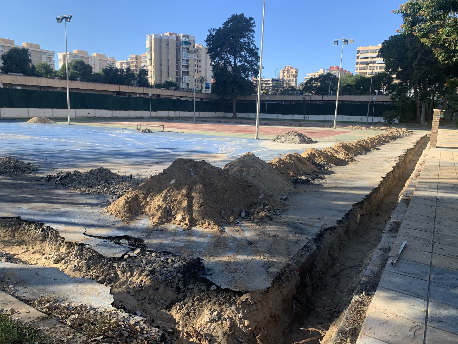 Se trata de 3 pistas llave en mano y se precedió a su completa demolición para posteriormente renovar el sistema de recogida de aguas pluviales, asfaltar la base con 2 capas de mezcla bituminosa en caliente sobre zahorras, sistema de resinas de 4 capas, equipamiento de tenis y vallado perimetral. La pista de pádel está montada sobre una nueva solera de hormigón, estructura lacada en verde, cristales templados de 10 mm, césped fibrilado de 10 mm de alta calidad y 8 focos led de bajo consumo.
