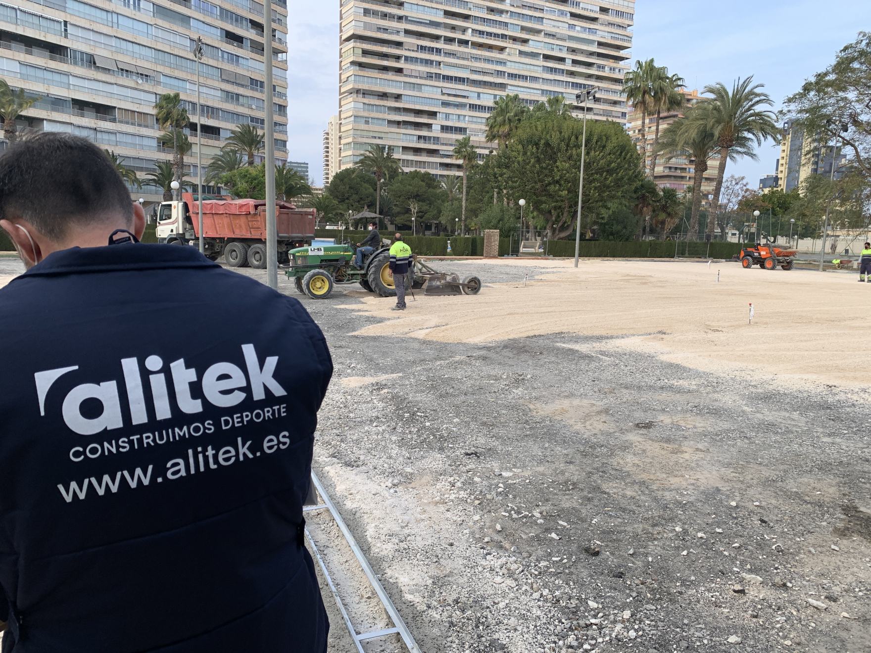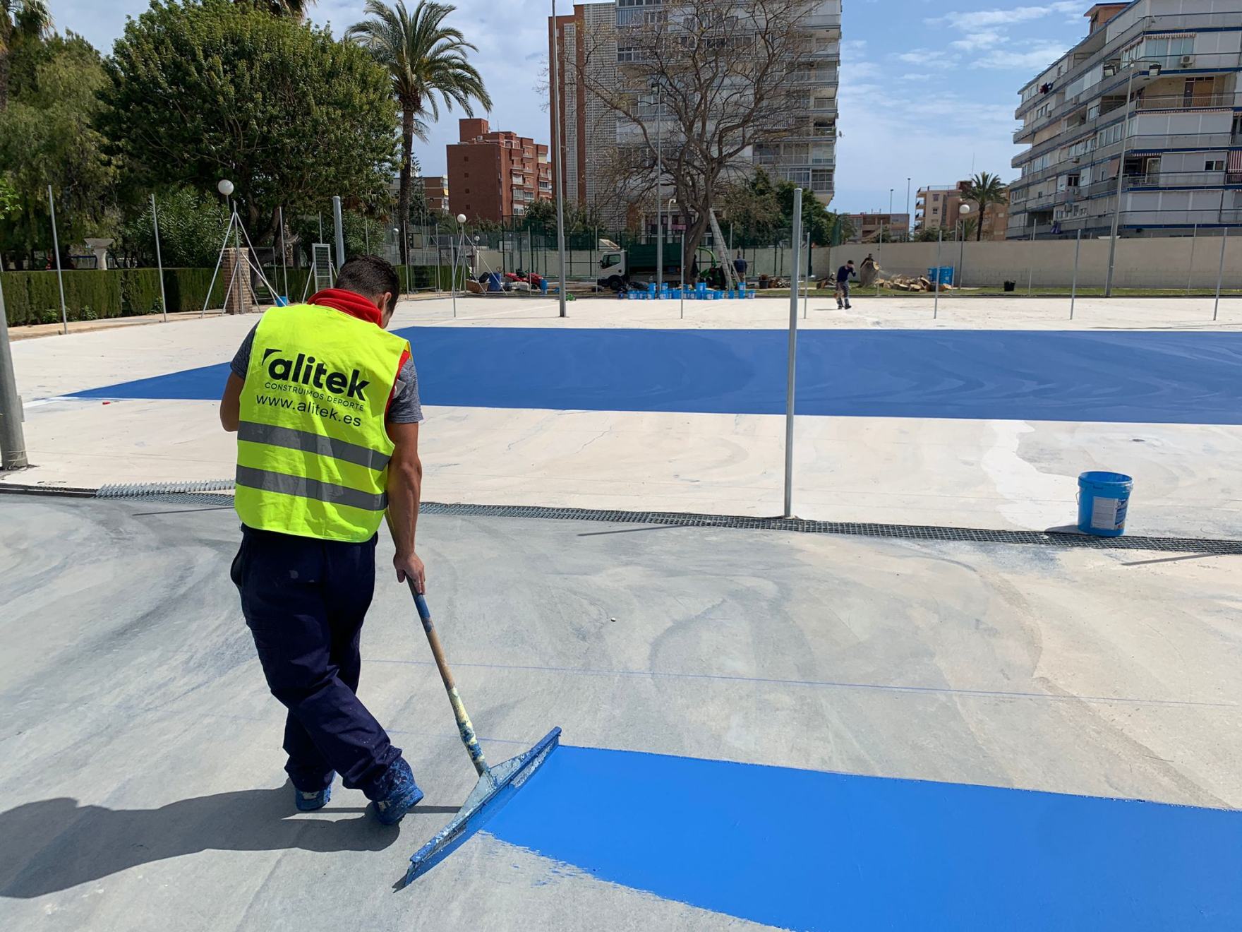 Dentro de su amplia cartera de trabajos realizados, ALITEK INGENIERÍA Y PAVIMENTOS, SL renovó tres pistas de tenis existentes y suministró y montó una de pádel en la urbanización ARIES y GÉMINIS en Playa San juan, Alicante.