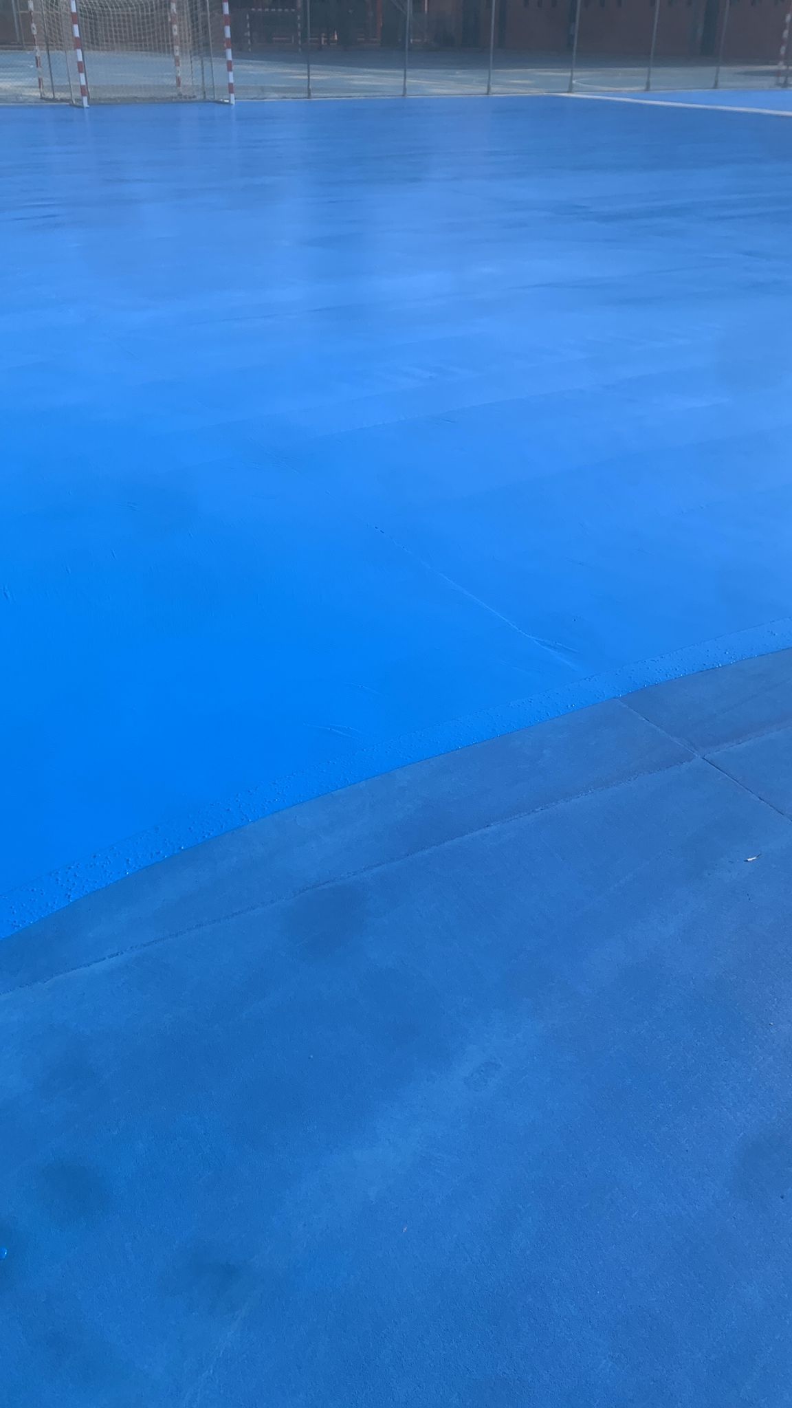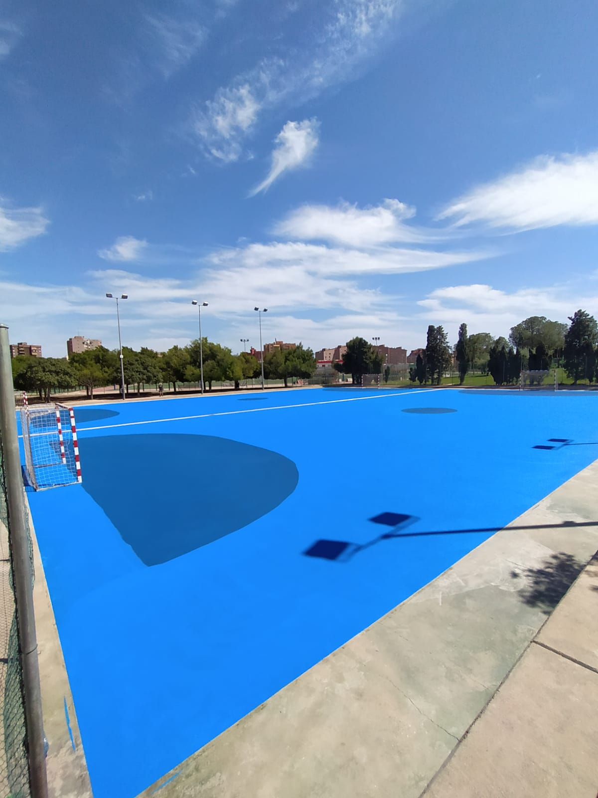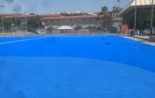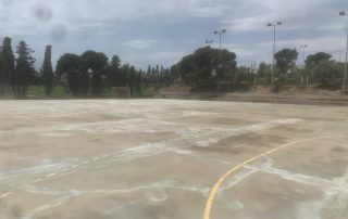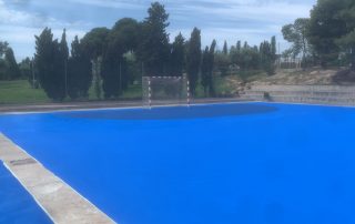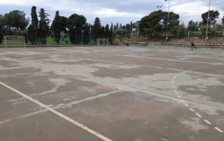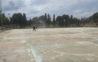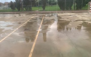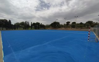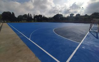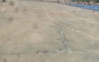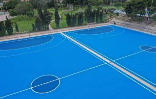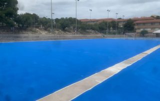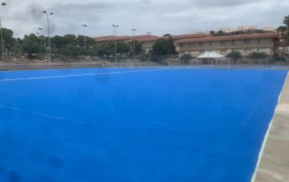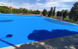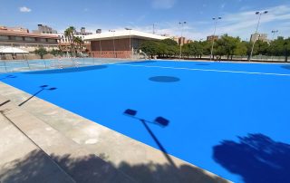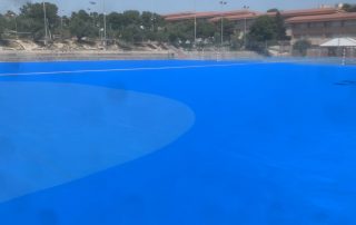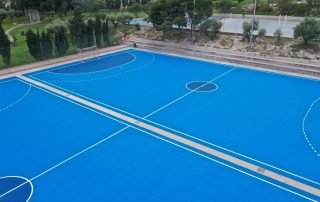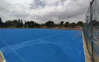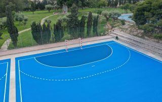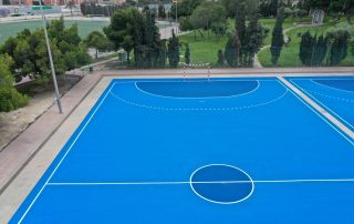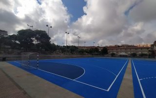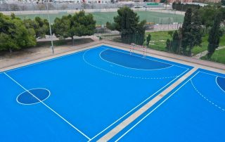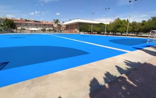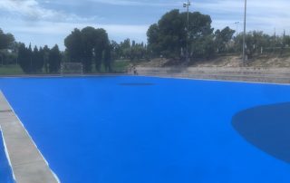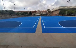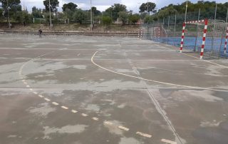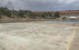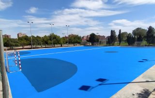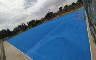 Se ejecutaron en una primera fase los trabajos previos de reparación de fisuras, eliminación de resaltos entre placas de hormigón y limpieza profunda de algunas zonas. A continuación lijado y limpieza de toda la superficie procediéndose después a aplicar 3 capas de resina, respetando siempre tiempos de secado de los materiales. Finalmente, marcaje de balonmano y a la vuelta de las vacaciones, 2 nuevas pistas para entrenar y disfrutar.
