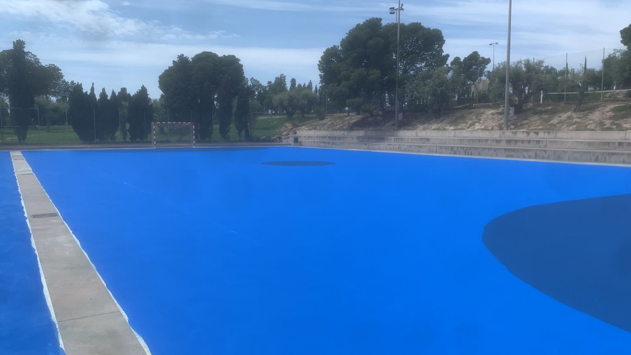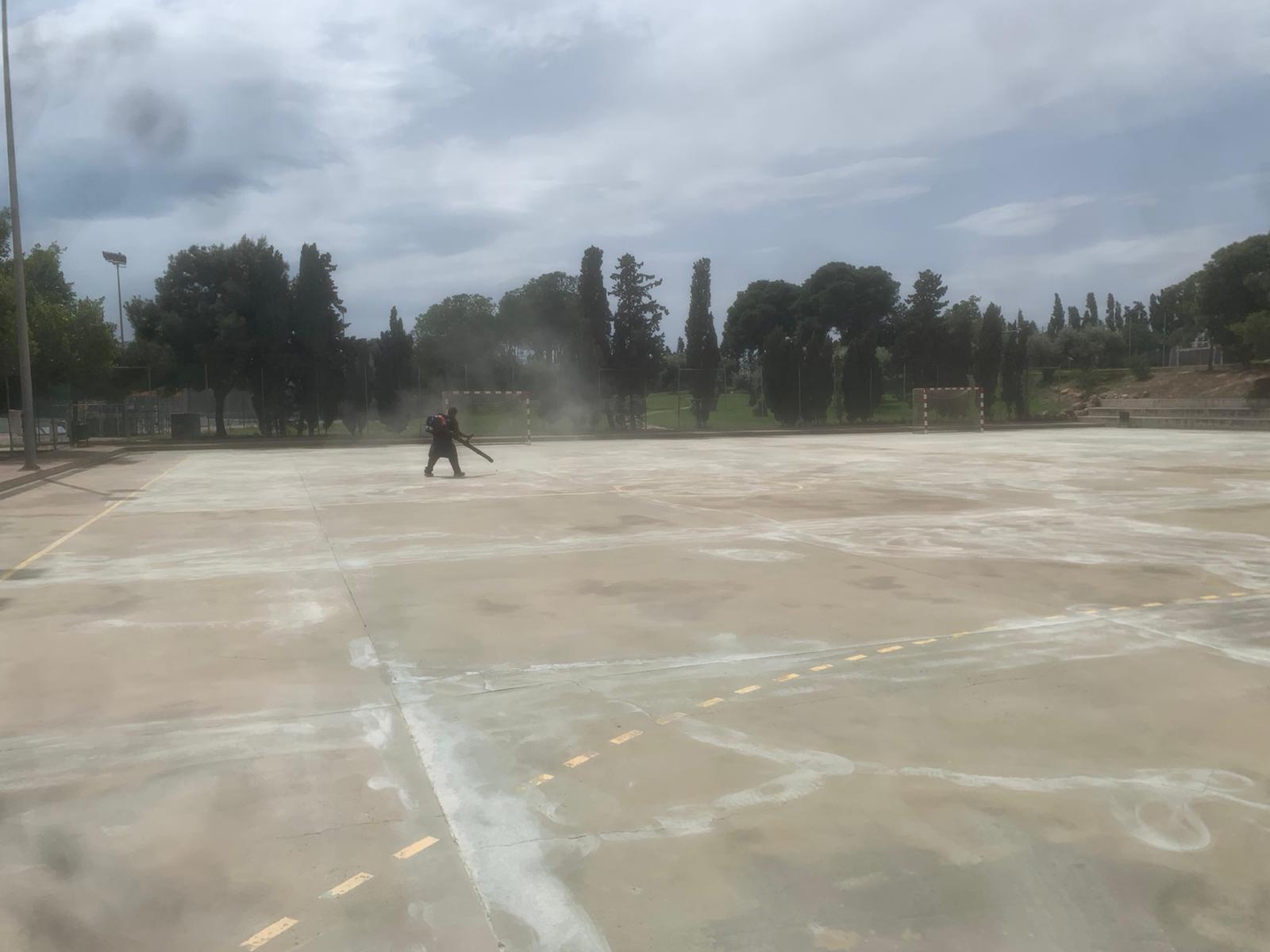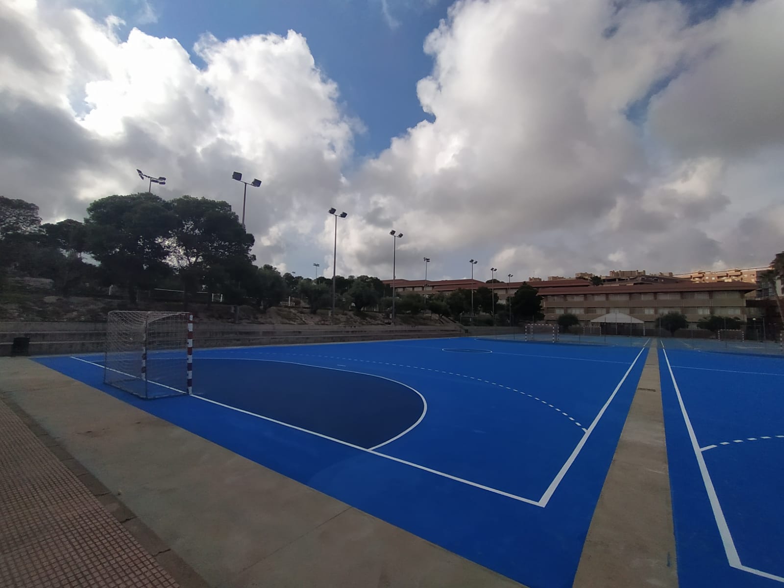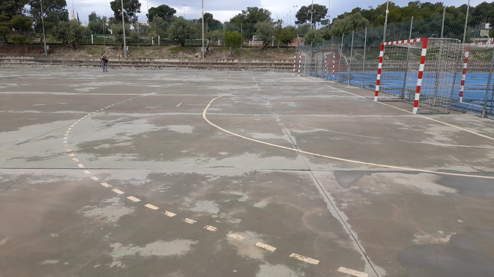 Se ejecutaron en una primera fase los trabajos previos de reparación de fisuras, eliminación de resaltos entre placas de hormigón y limpieza profunda de algunas zonas. A continuación lijado y limpieza de toda la superficie procediéndose después a aplicar 3 capas de resina, respetando siempre tiempos de secado de los materiales. Finalmente, marcaje de balonmano y a la vuelta de las vacaciones, 2 nuevas pistas para entrenar y disfrutar.