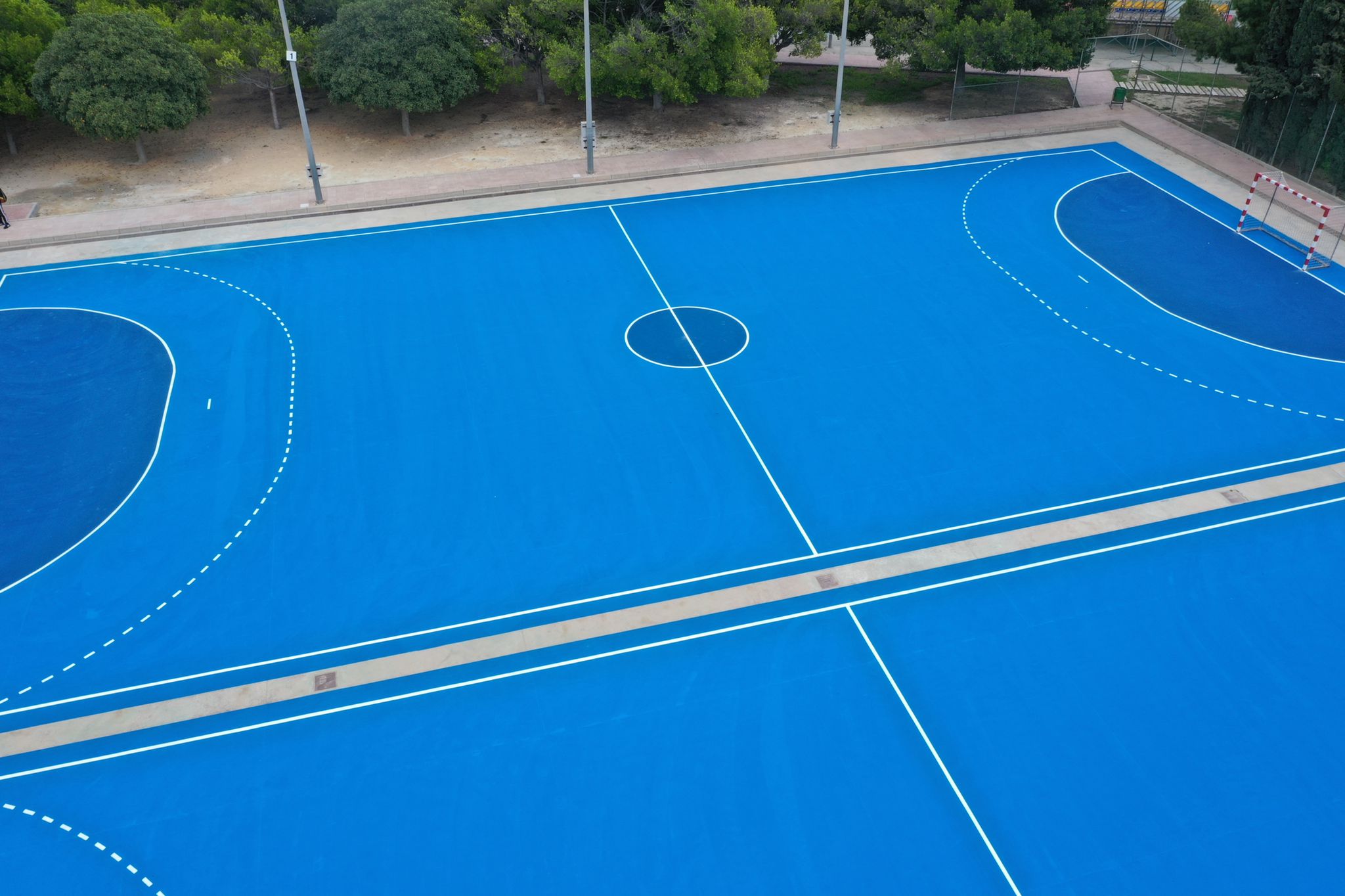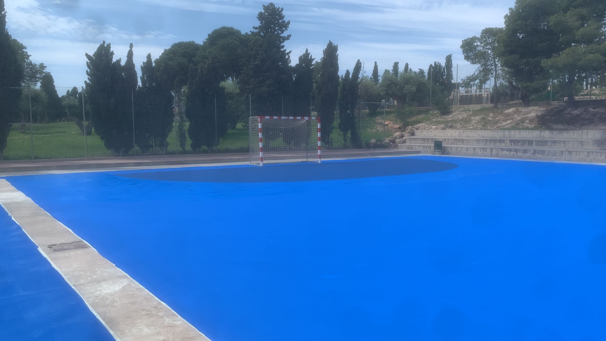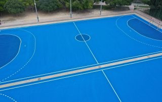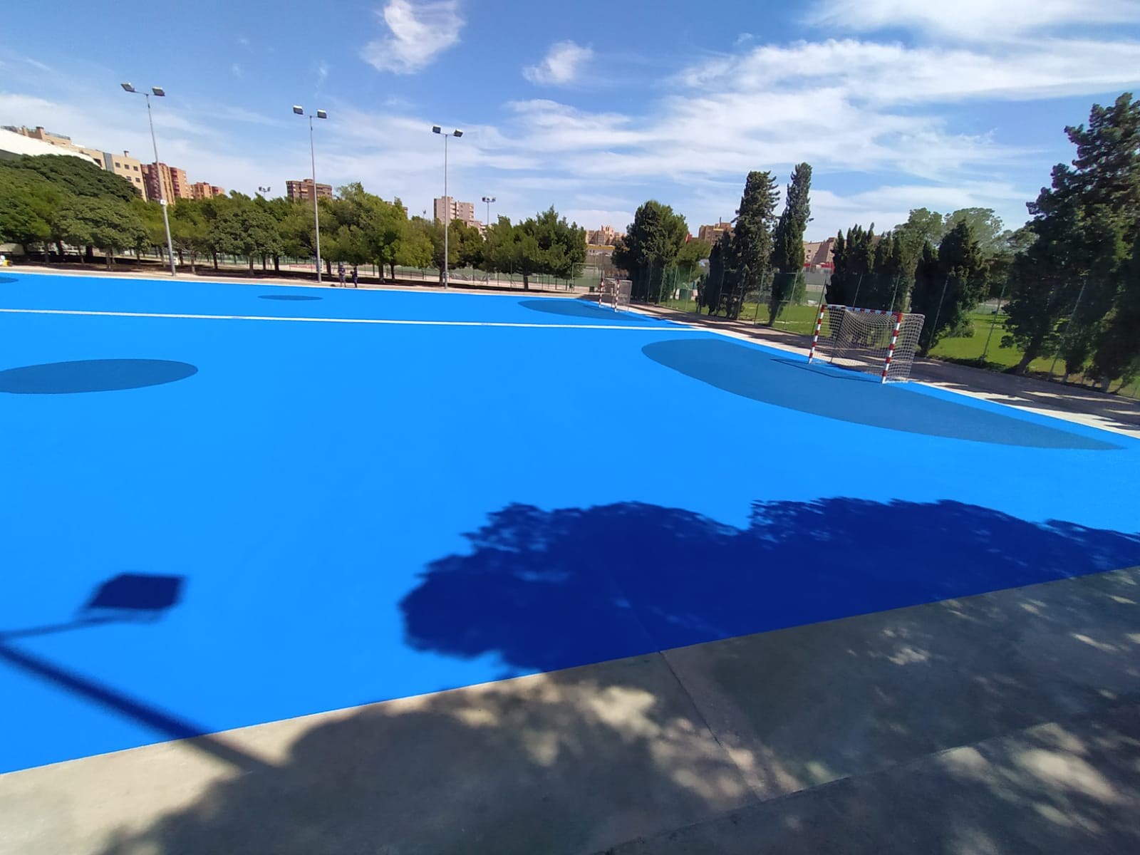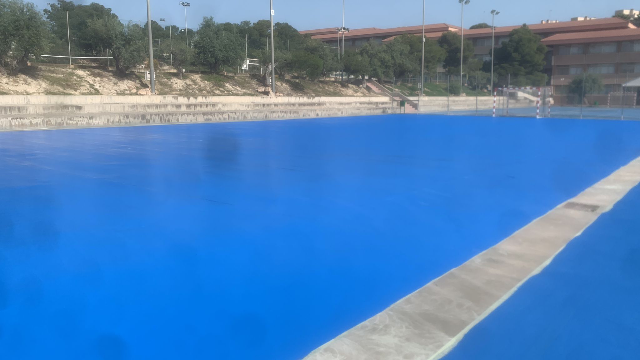 Se ejecutaron en una primera fase los trabajos previos de reparación de fisuras, eliminación de resaltos entre placas de hormigón y limpieza profunda de algunas zonas. A continuación lijado y limpieza de toda la superficie procediéndose después a aplicar 3 capas de resina, respetando siempre tiempos de secado de los materiales. Finalmente, marcaje de balonmano y a la vuelta de las vacaciones, 2 nuevas pistas para entrenar y disfrutar.