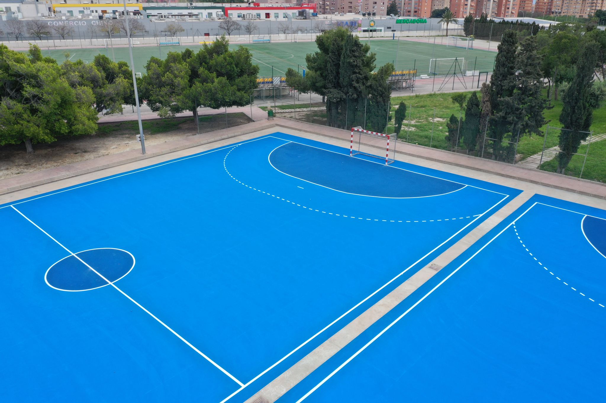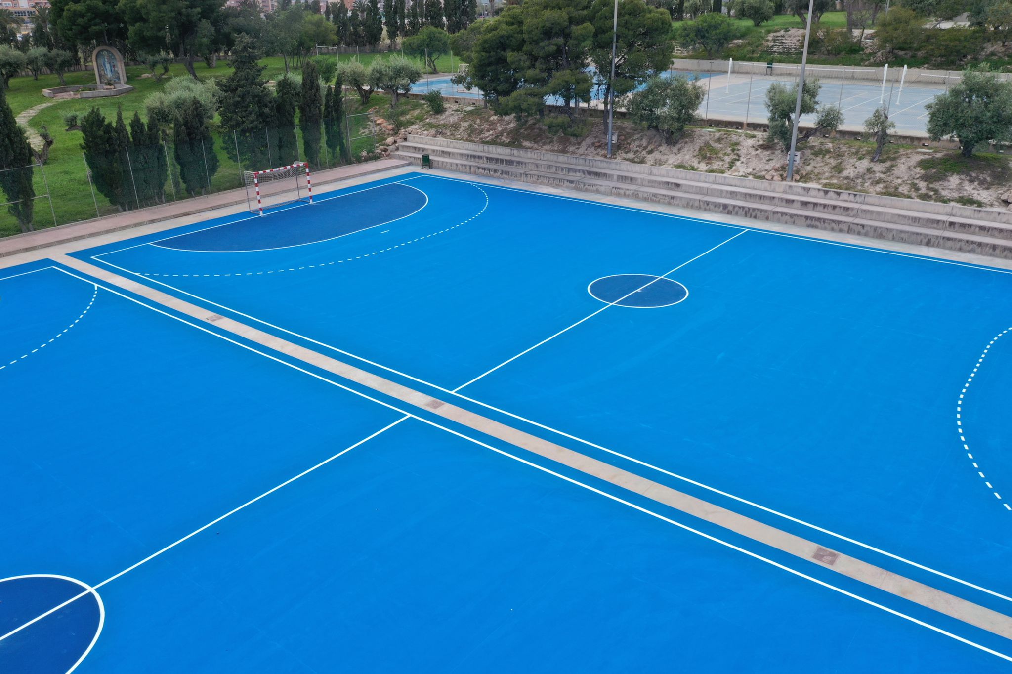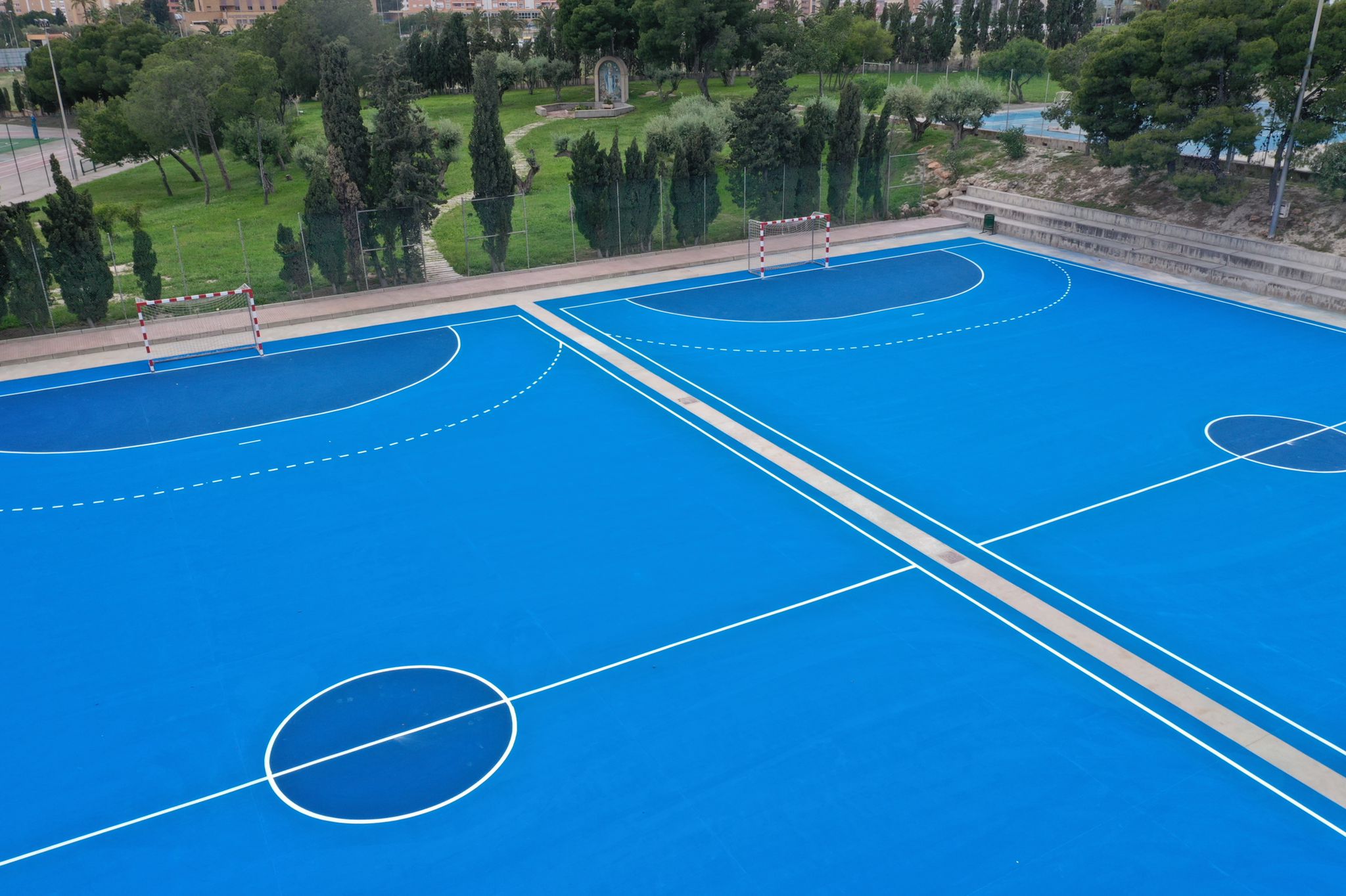 Aprovechando las vacaciones escolares de Semana Santa y la tregua que nos ha dado la lluvia, hemos rehabilitado 2 pistas de hormigón en el colegio Colegio HH. Maristas Sagrado Corazón de Alicante.