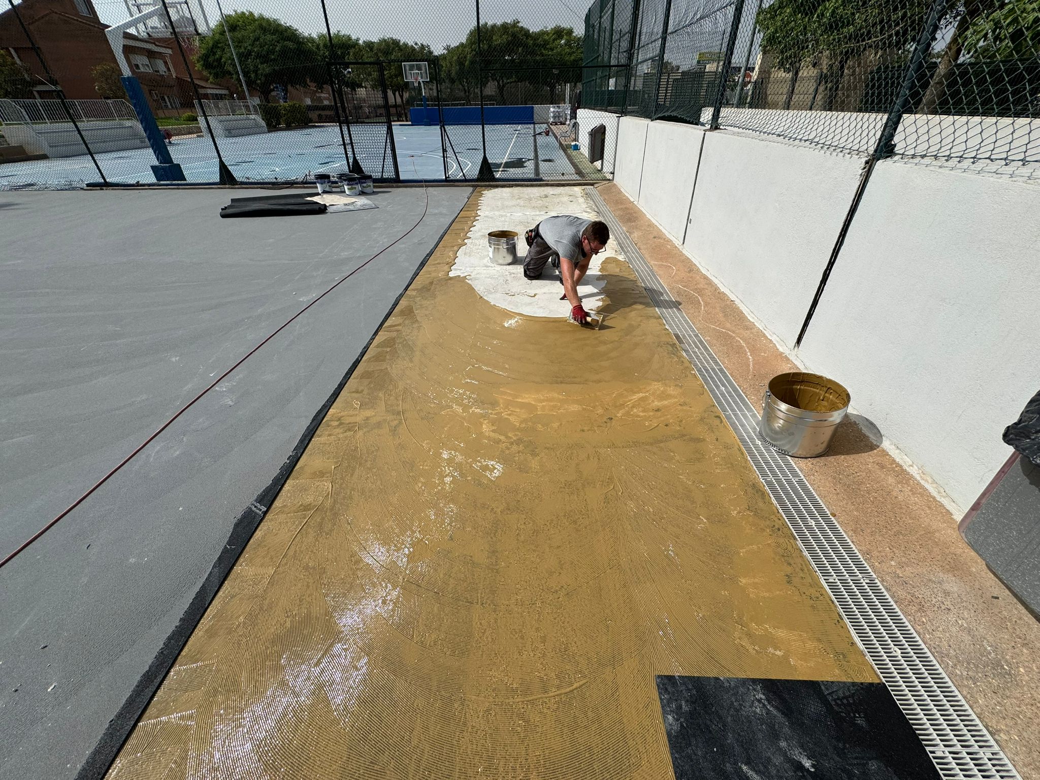 Aplicación del sistema deportivo de 5 capas, que garantiza un acabado profesional, seguro y de alto rendimiento.