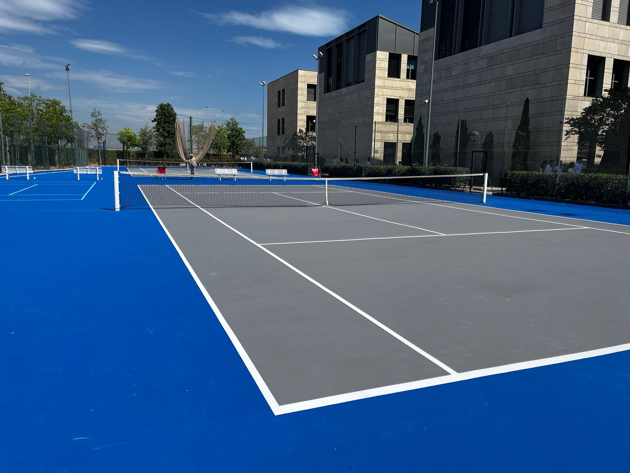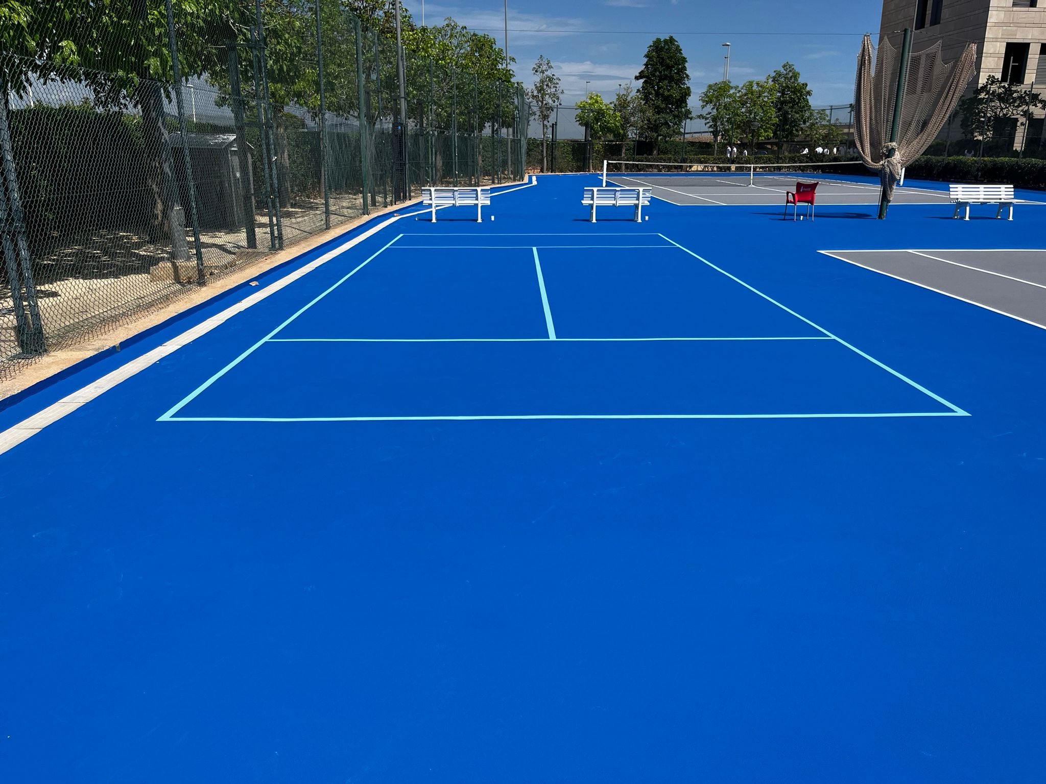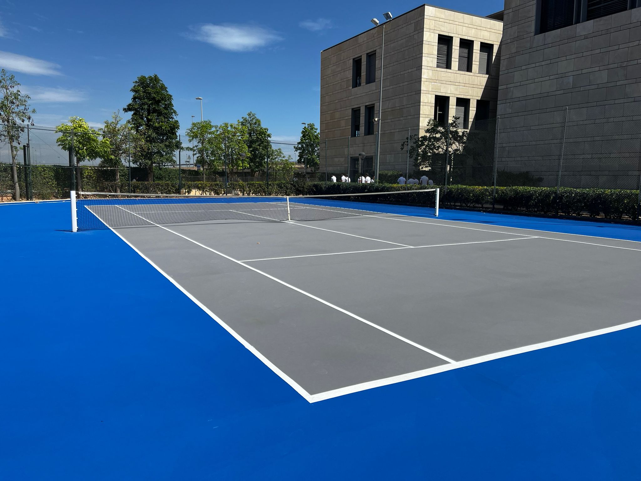 Con esta actuación, el Colegio Caxton de Valencia dispone ahora de una pista de tenis renovada, pensada para resistir un uso intensivo y ofrecer las mejores condiciones de juego y seguridad.